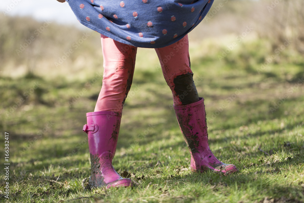 Girl wearing muddy wellies with muddy knees Stock Photo Adobe Stock