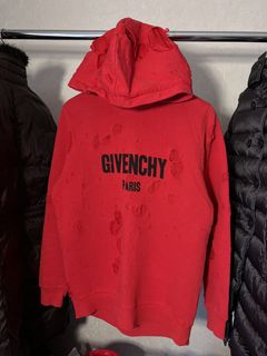 - givenchy red distressed hoodie
