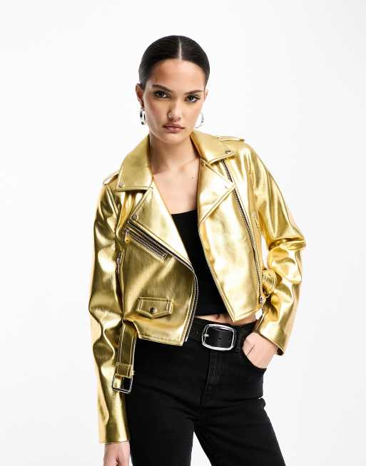 Gold leather jackets clearance