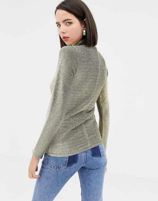 Warehouse Metallic Glitter Funnel Neck Top Gold 6