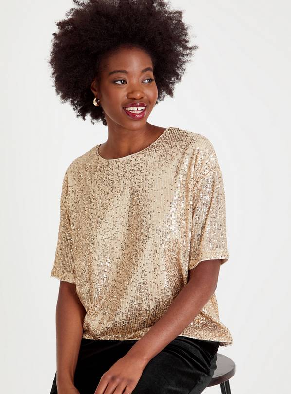 Buy Gold Sequin Boxy Fit Top 10 T shirts Tu