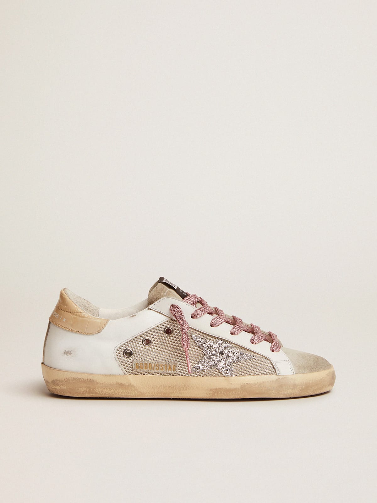 Golden goose argento e oro clearance, Sneaker Super Star in pelle bianca e rete argento clearance