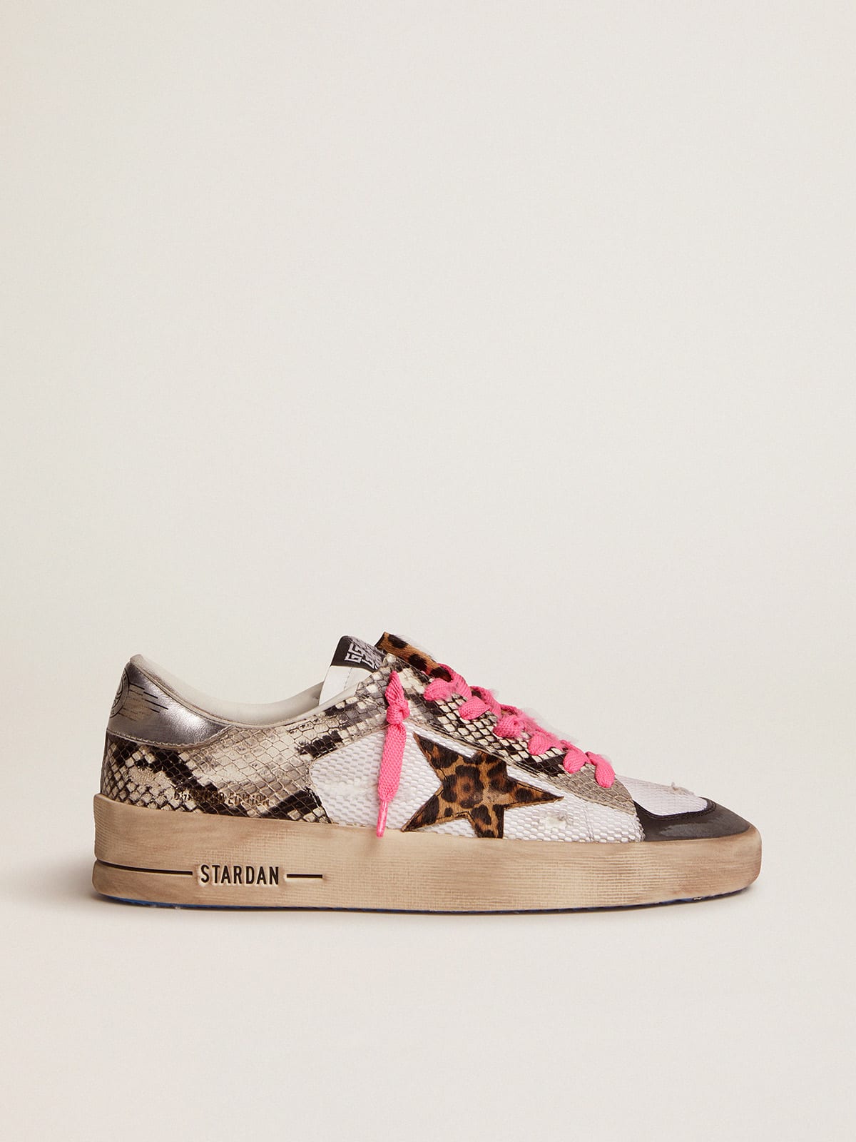 Golden goose cavallino clearance, Men s Stardan LAB sneakers with leather upper and leopard print pony skin star clearance