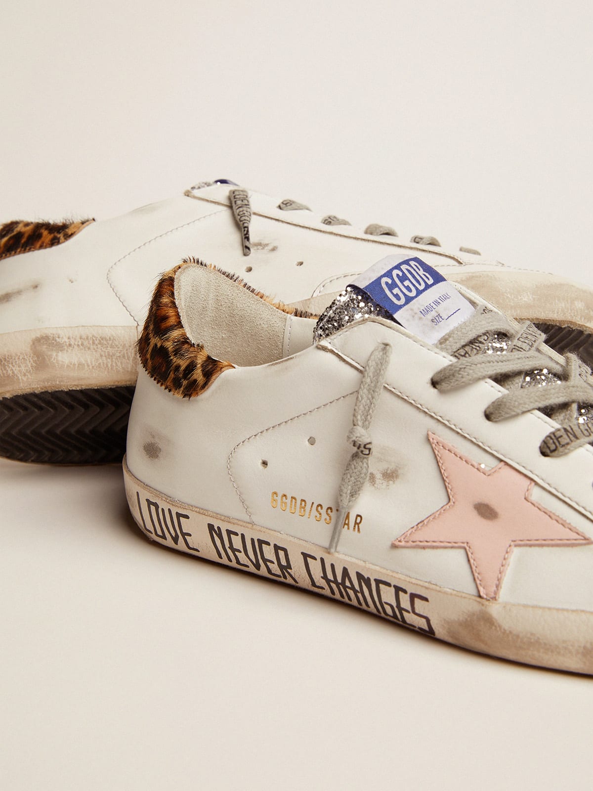 Golden goose glitter tongue clearance, Super Star sneakers with silver glitter tongue and handwritten lettering clearance