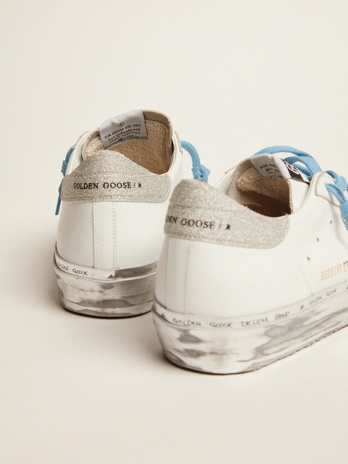 Golden goose hi star azzurre clearance, Hi Star LTD sneakers with glitter tongue and cyan blue suede star clearance