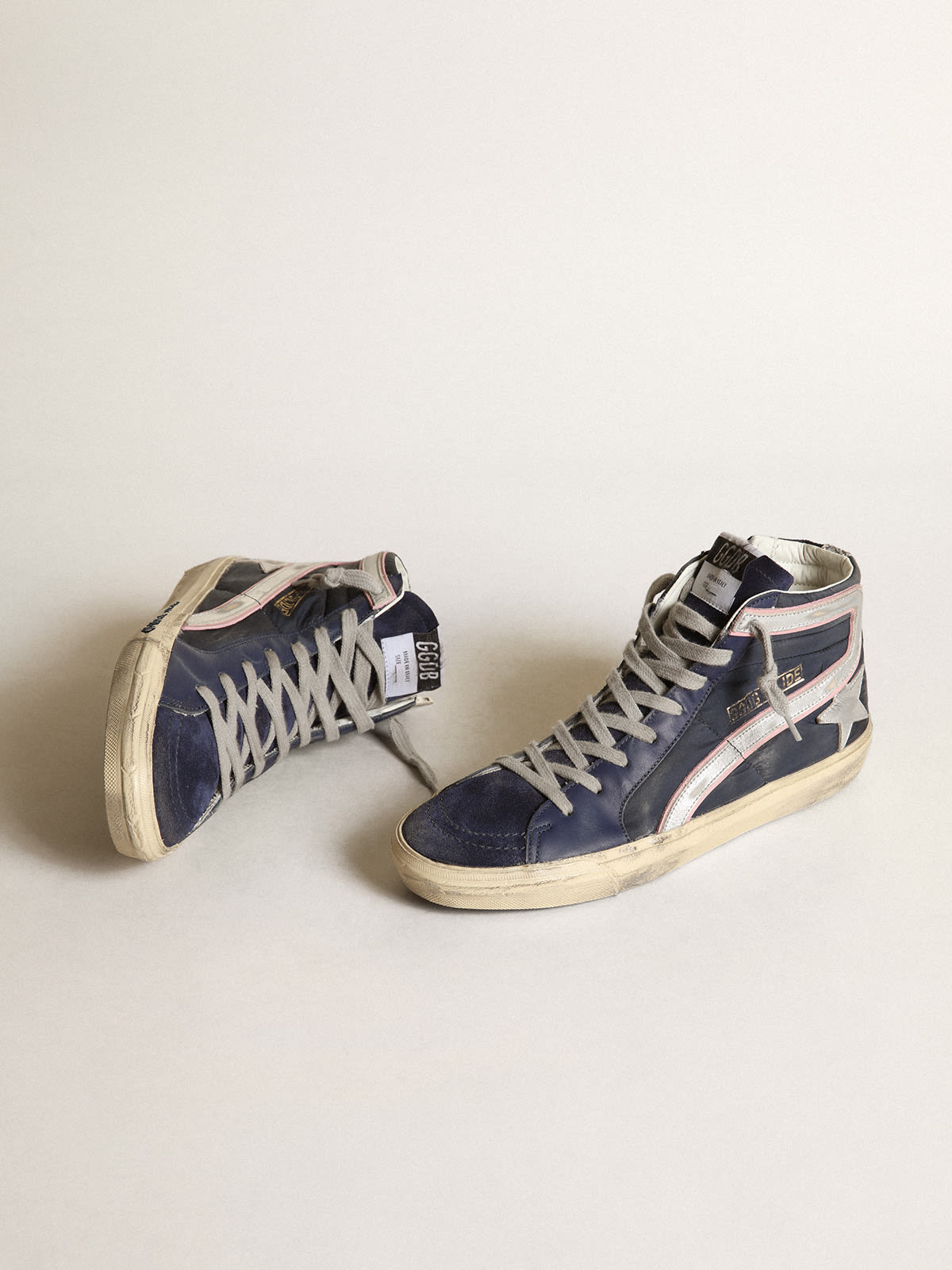 Slide LTD sneakers in blue nylon with silver metallic leather star and flash
