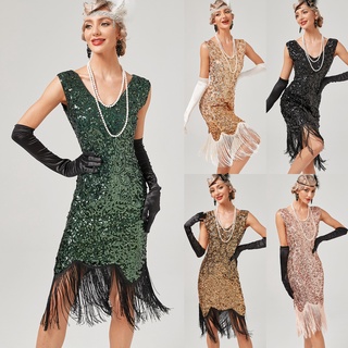 1920 s Flapper Dress Great Gatsby Evening Prom Sequins Fringed
