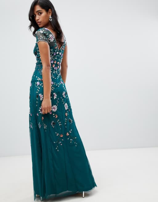 Jade Green Sequin Embellished Maxi Dress SilkFred