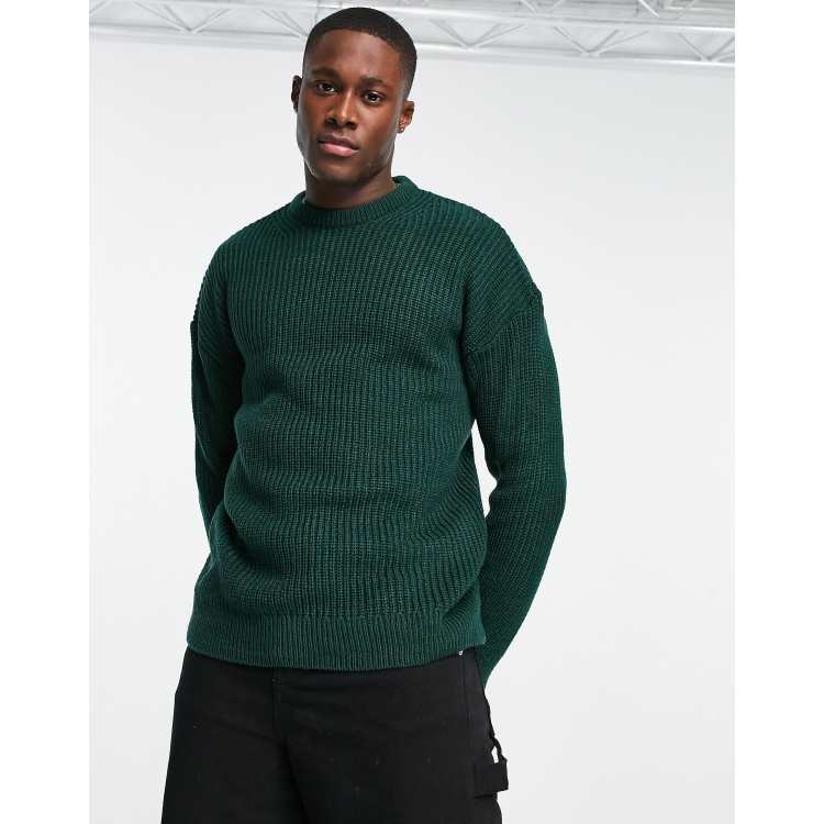 Pull Bear relaxed fisherman ribbed jumper in forrest green