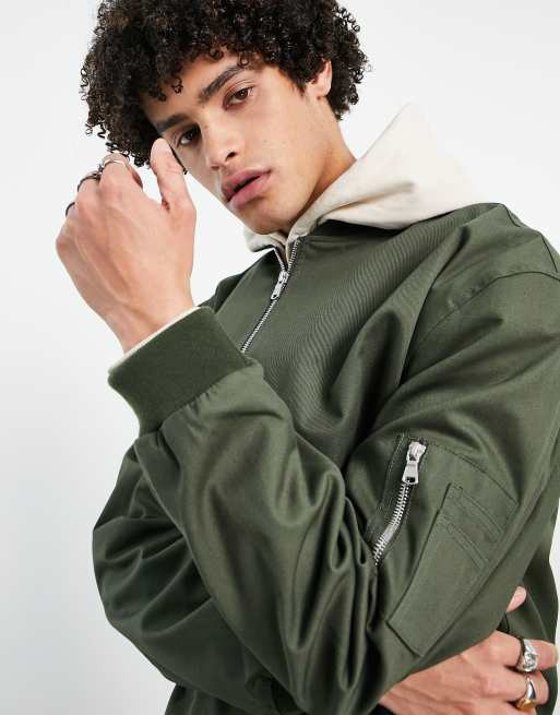 Green jacket asos clearance, ASOS DESIGN oversized bomber jacket with MA1 pocket in dark green clearance