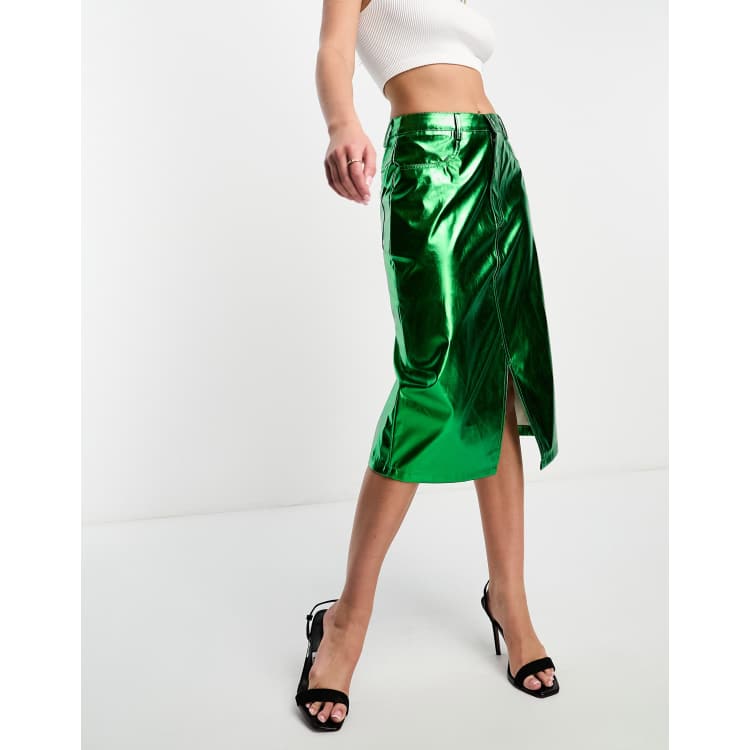 Green metallic midi skirt clearance, Metallic Midi Skirt Madida Clothing clearance