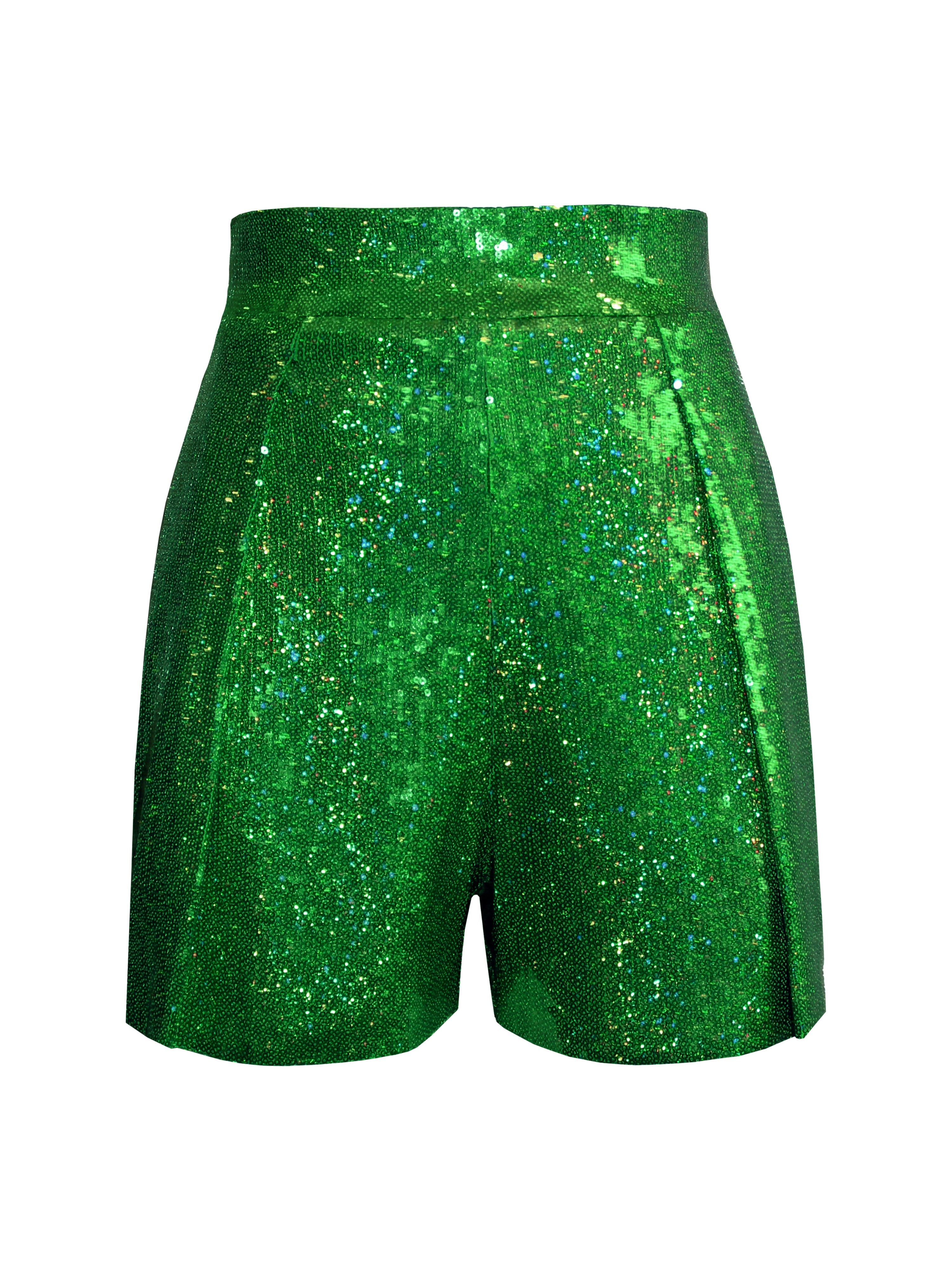 Sequined High Waist Shorts Green L MOMO Wolf Badger