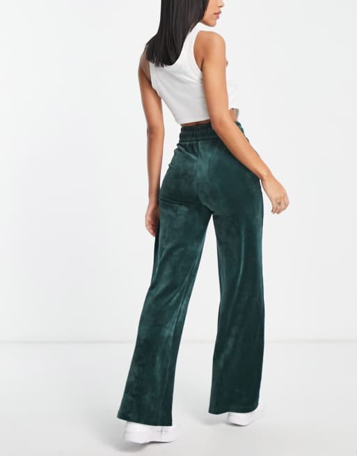 Green velvet puma clearance, Puma velour wide leg sweatpants in dark green clearance
