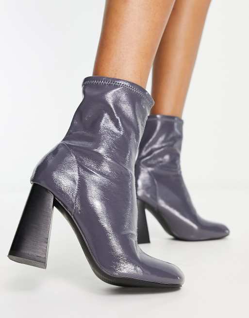 Topshop Grey Patent Leather Heeled Ankle Boots eBay