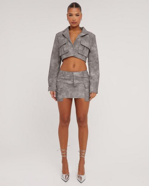 High Waist Side Split Detail Pleated Mini Skirt In Grey Camo EGO
