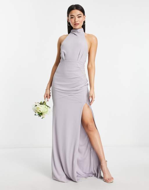 TFNC Bridesmaid chiffon high neck maxi dress with tie back in grey