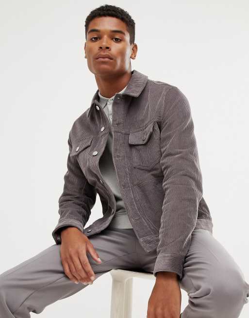 ASOS DESIGN cord jacket in grey