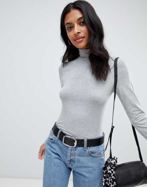 ASOS DESIGN turtle neck long sleeve top in grey