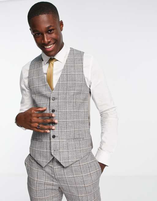 Grey plaid waistcoat clearance, Manfinity Mode Men Plus Plaid Double Breasted Waistcoat Suit clearance