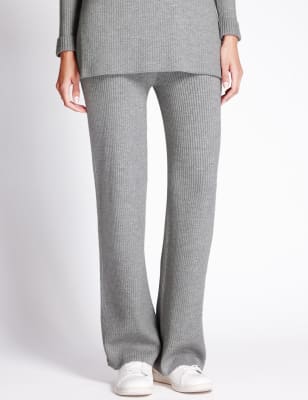 Knitted Ribbed Wide Leg Trousers with Wool Autograph M S