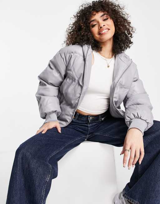 NA KD faux leather short puffer jacket in grey