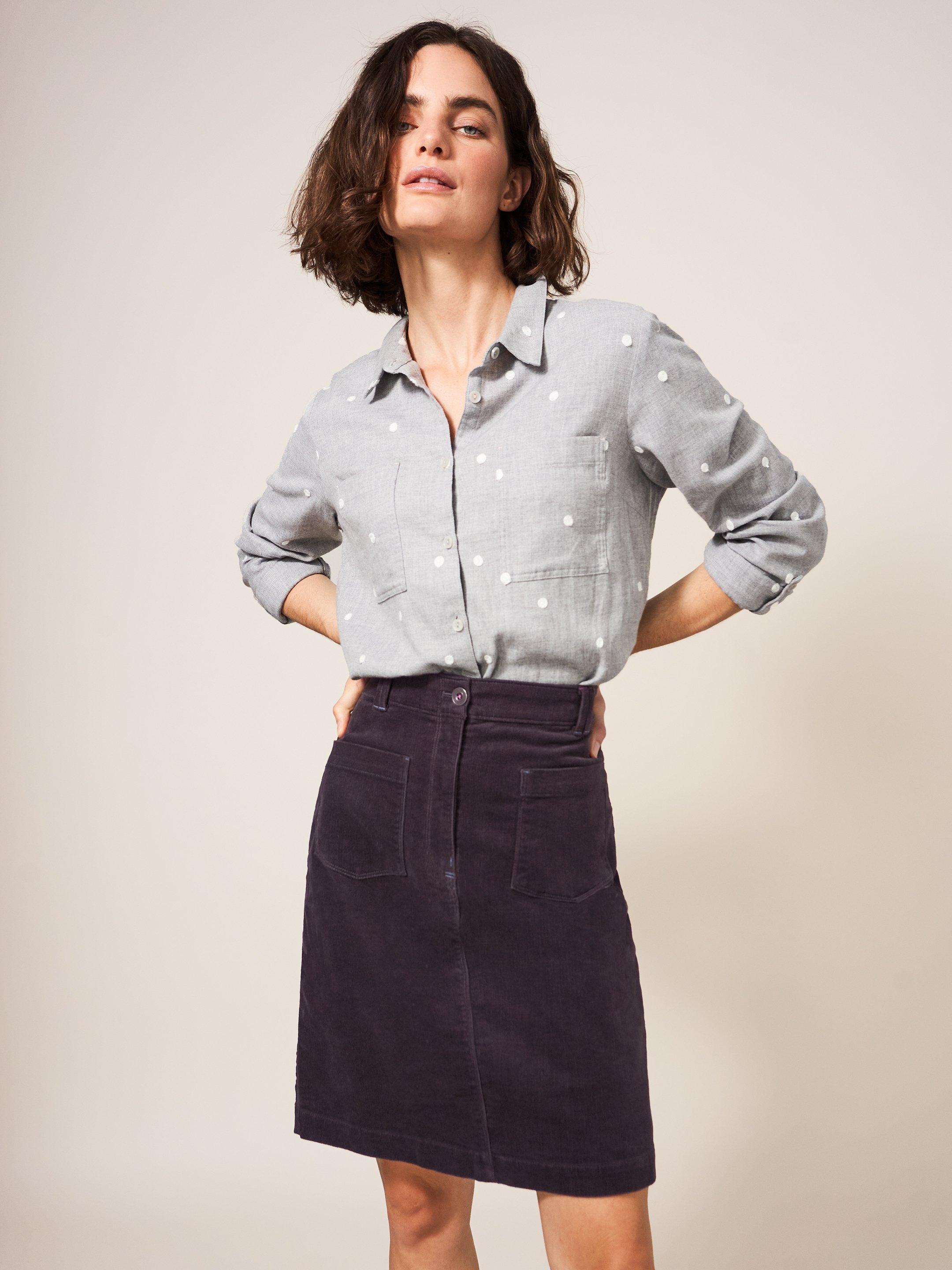Melody Organic Cord Skirt in DARK GREY White Stuff