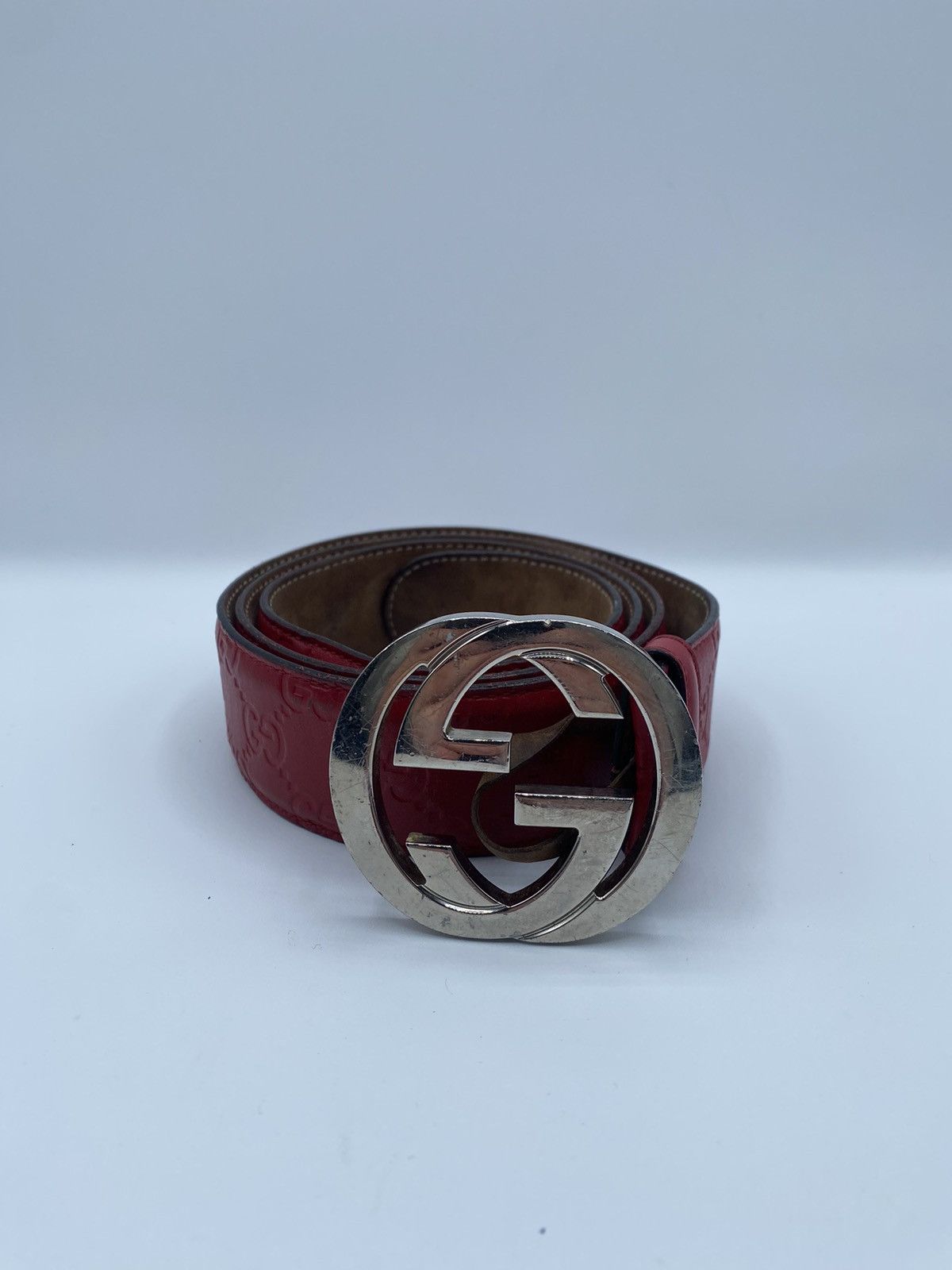 Pre owned Gucci Red Embossed Belt Fits 32 36 ModeSens