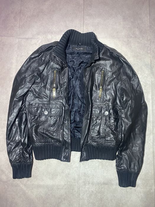 GUCCI leather jacket Madonna black bomber aviator slim fit