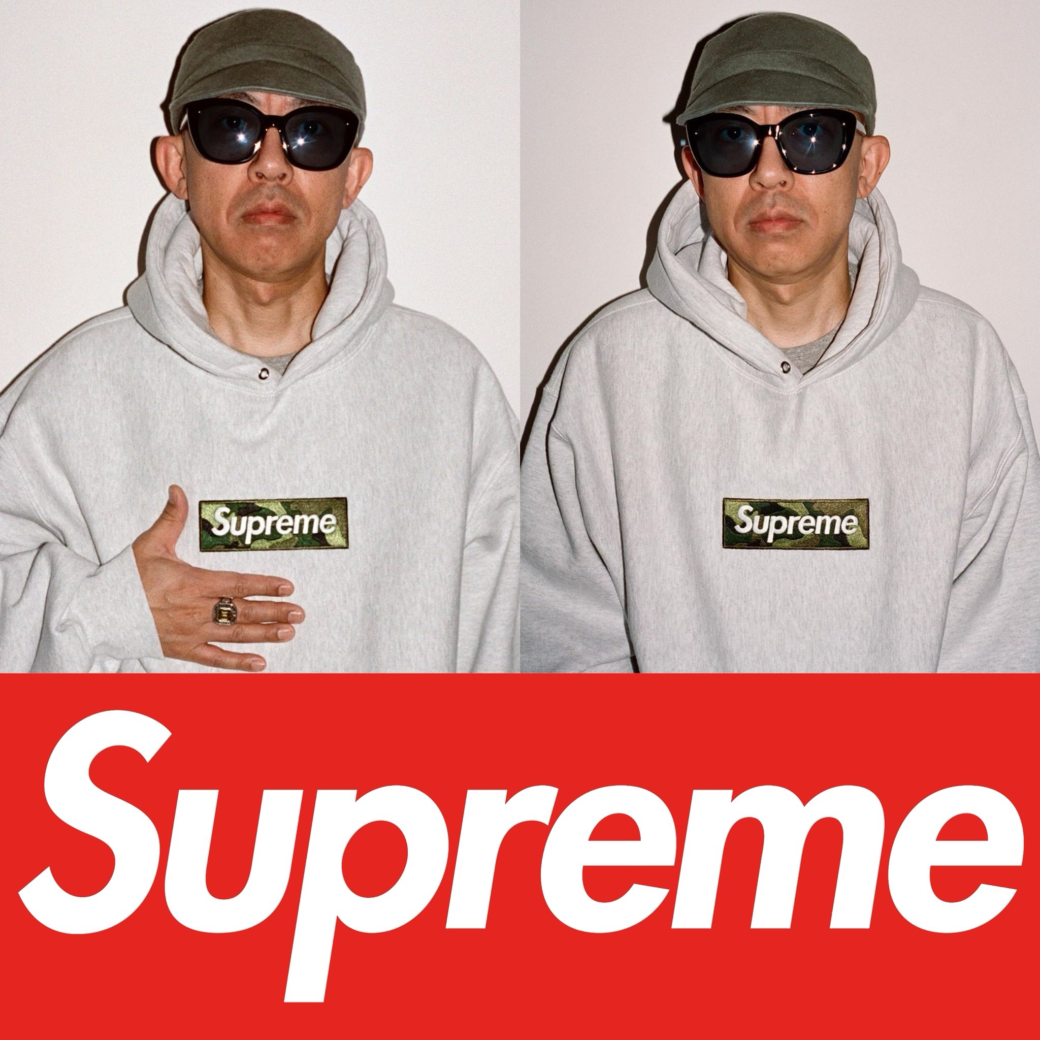 Nigo for Supreme. Pictured in same box logo design he wore 26