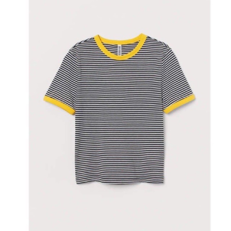H M Black and White Striped Yellow Ringer Tee Shopee Philippines