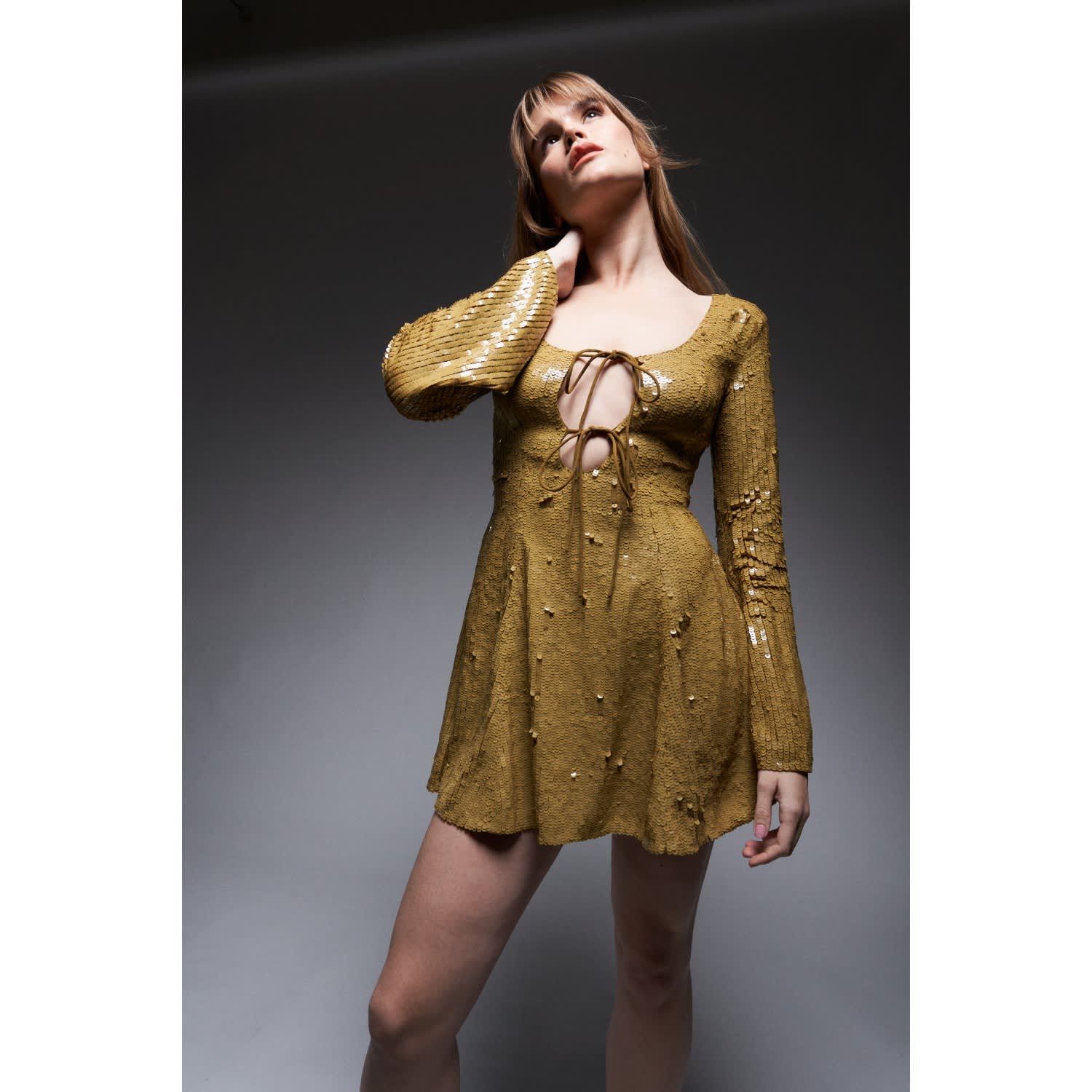 Harlow Dress In Khaki Sequins RaeVynn Wolf Badger