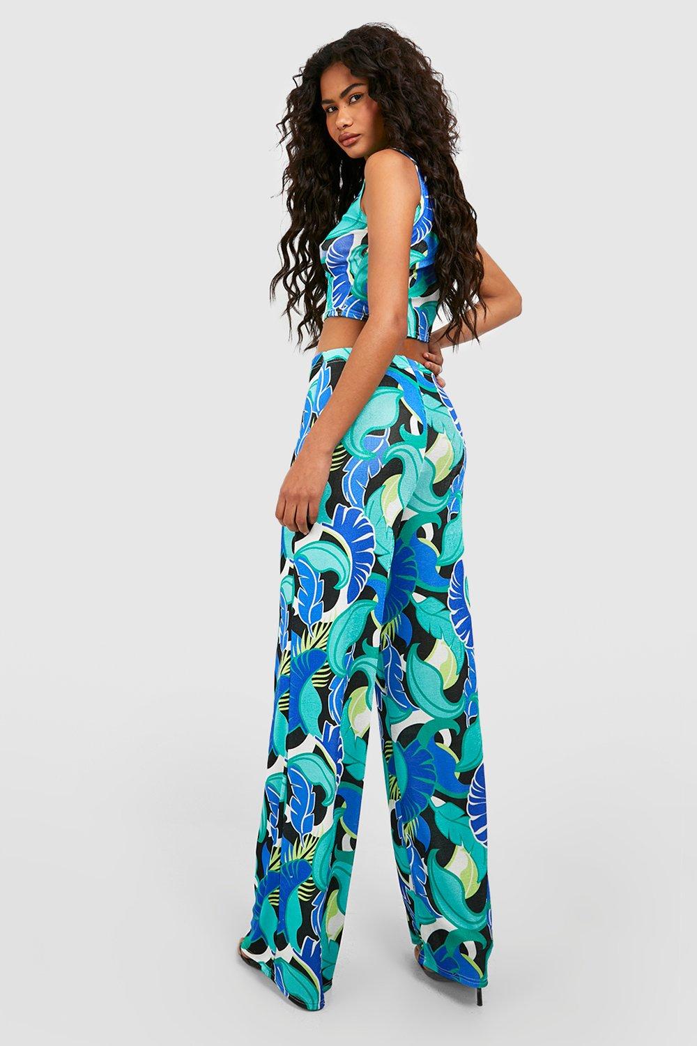 Hawaiian Print Acetate Slinky Wide Leg Pants boohoo