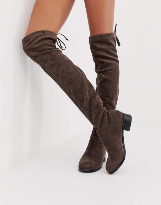 Head Over Heels Taraa flat over the knee boots in brown ASOS