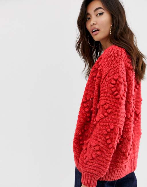 River Island cardigan with bobble hearts in red ASOS