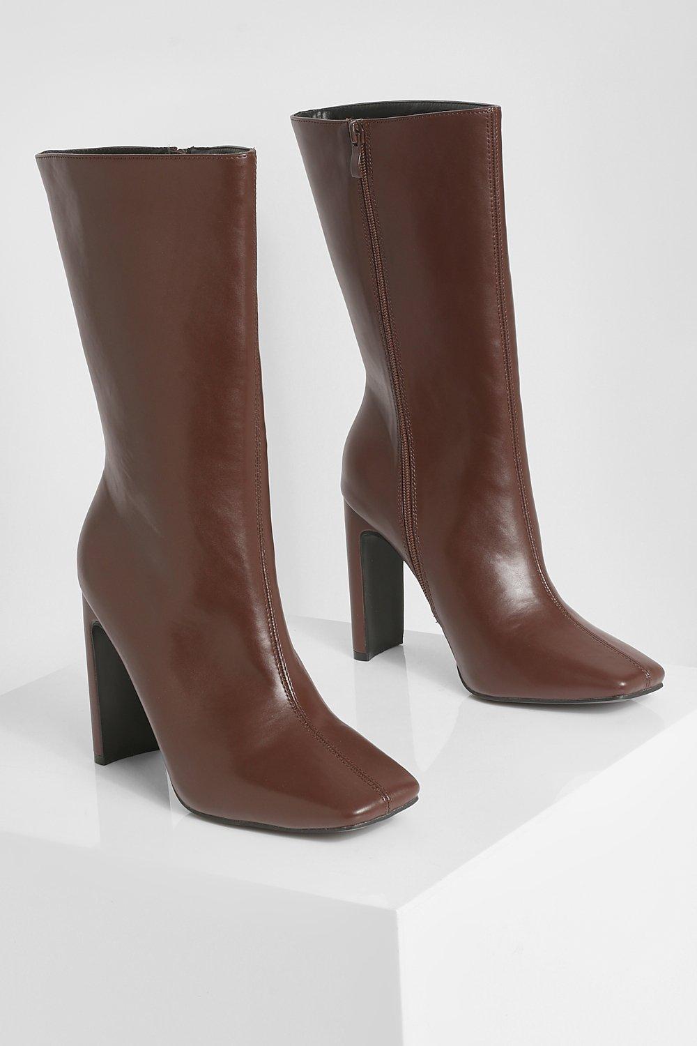Heels and boots clearance, Wide Fit Square Toe Heeled Boots Boohoo UK clearance