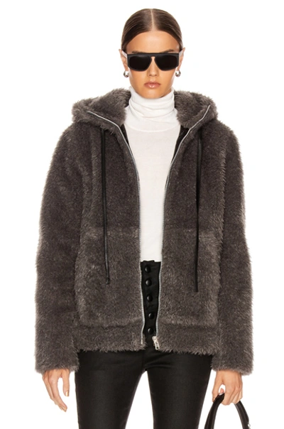 Helmut Lang Shaggy Faux fur Bomber Jacket In Charcoal Melange