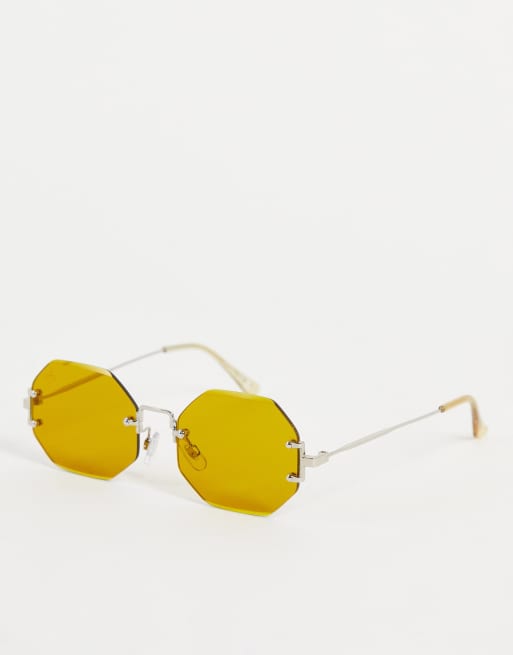 Jeepers Peepers metal hexagon sunglasses in yellow ASOS