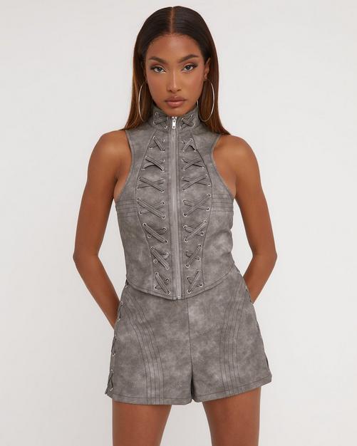 White Contour Rib High Neck Zip Crop Top PrettyLittleThing
