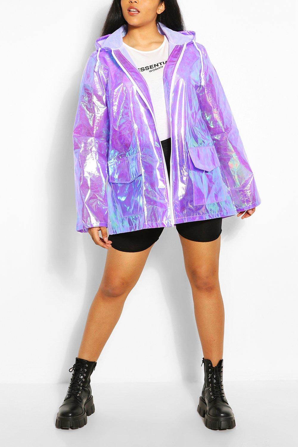 Holographic raincoat plus size clearance