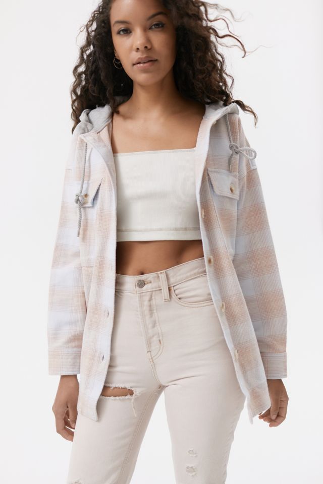 Hooded flannel shirt womens clearance, BDG Lydia Hooded Flannel Shirt Jacket clearance