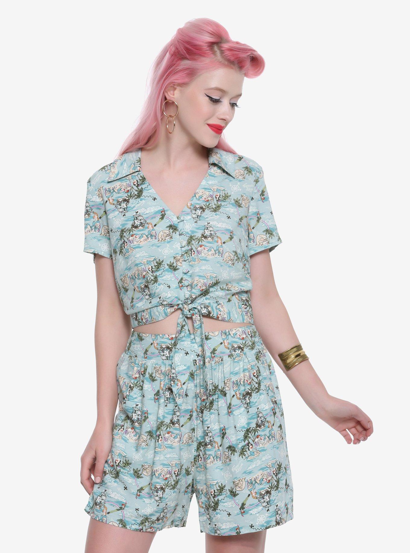Her Universe Disney Peter Pan Mermaid Lagoon Retro Tie Front Girls Crop Woven Button Up