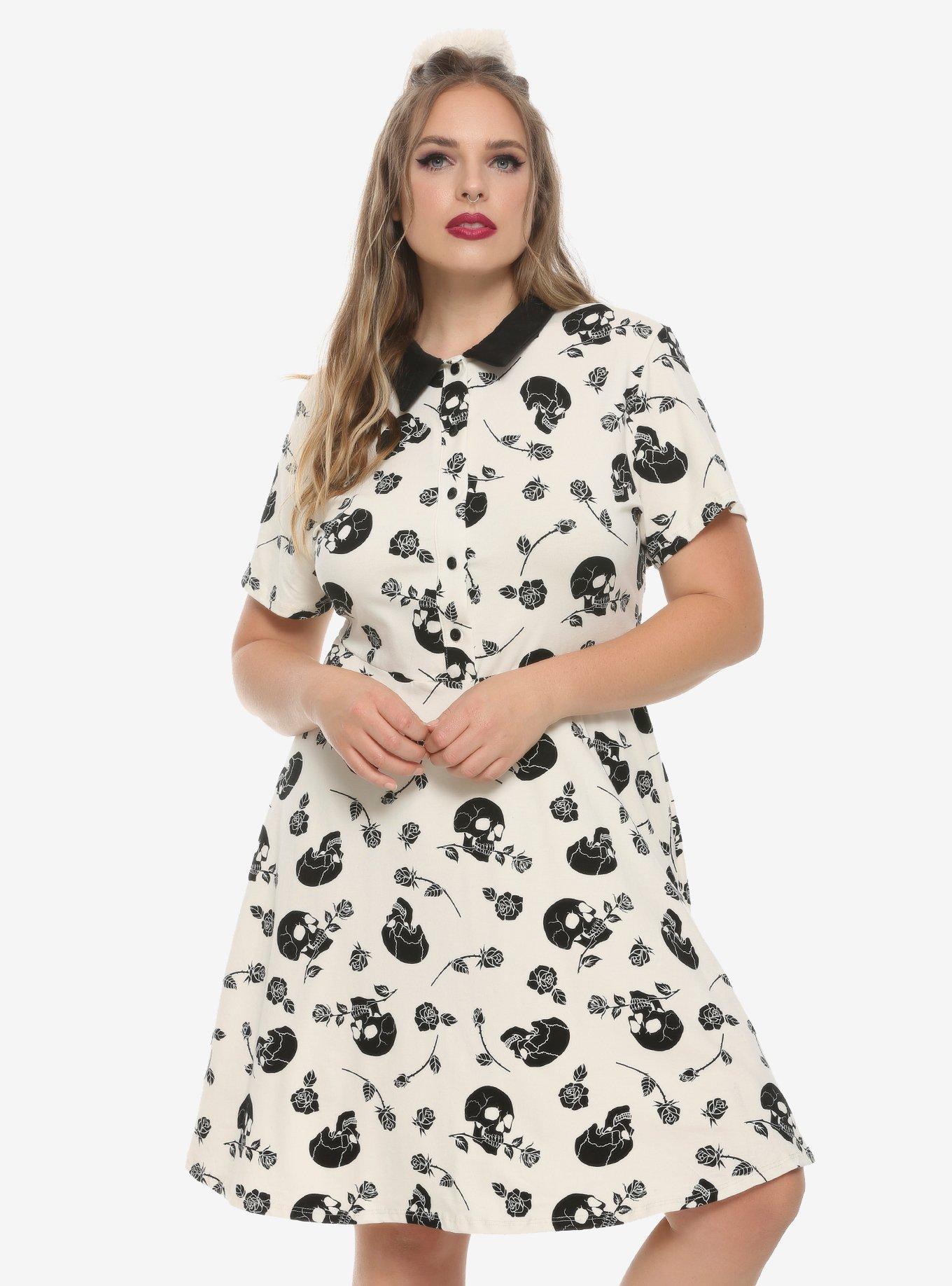 Hot topic skull dress clearance, Cream Black Skull Collared Dress Plus Size clearance