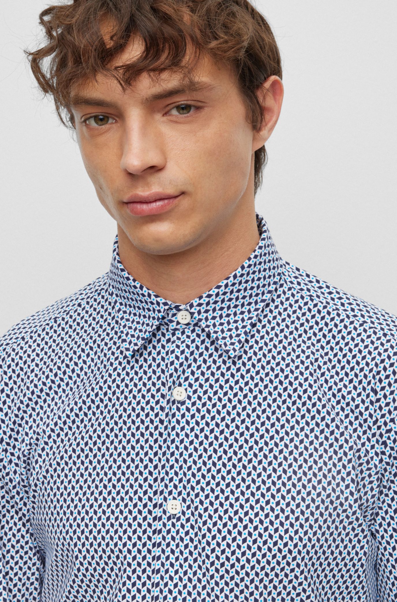 BOSS Slim fit shirt in geometric printed performance stretch fabric