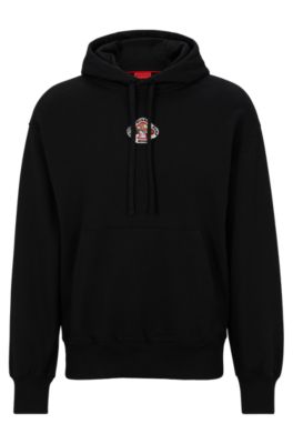 HUGO Cotton terry hoodie with branded mushroom artwork