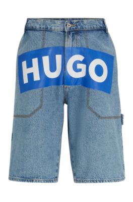 Hugo boss denim shorts clearance, Tapered fit shorts in blue knitted denim clearance