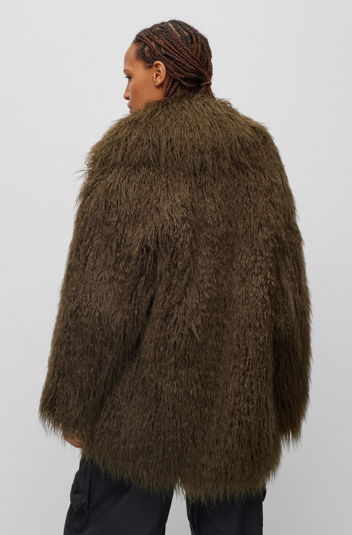 HUGO Relaxed fit jacket in faux fur with stacked logo