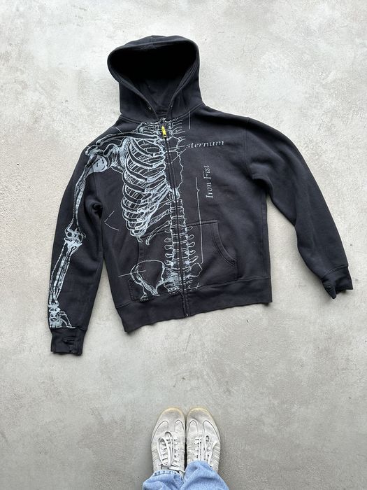 Large iron fist skeleton zip hoodie jacket jacket Depop