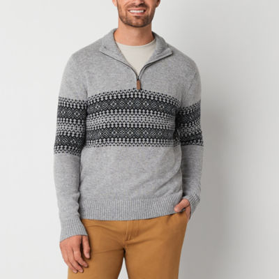 Izod fair isle sweater clearance, IZOD Men s Fairisle Quarter Zip 5 Gauge Sweater Carbon Heather clearance