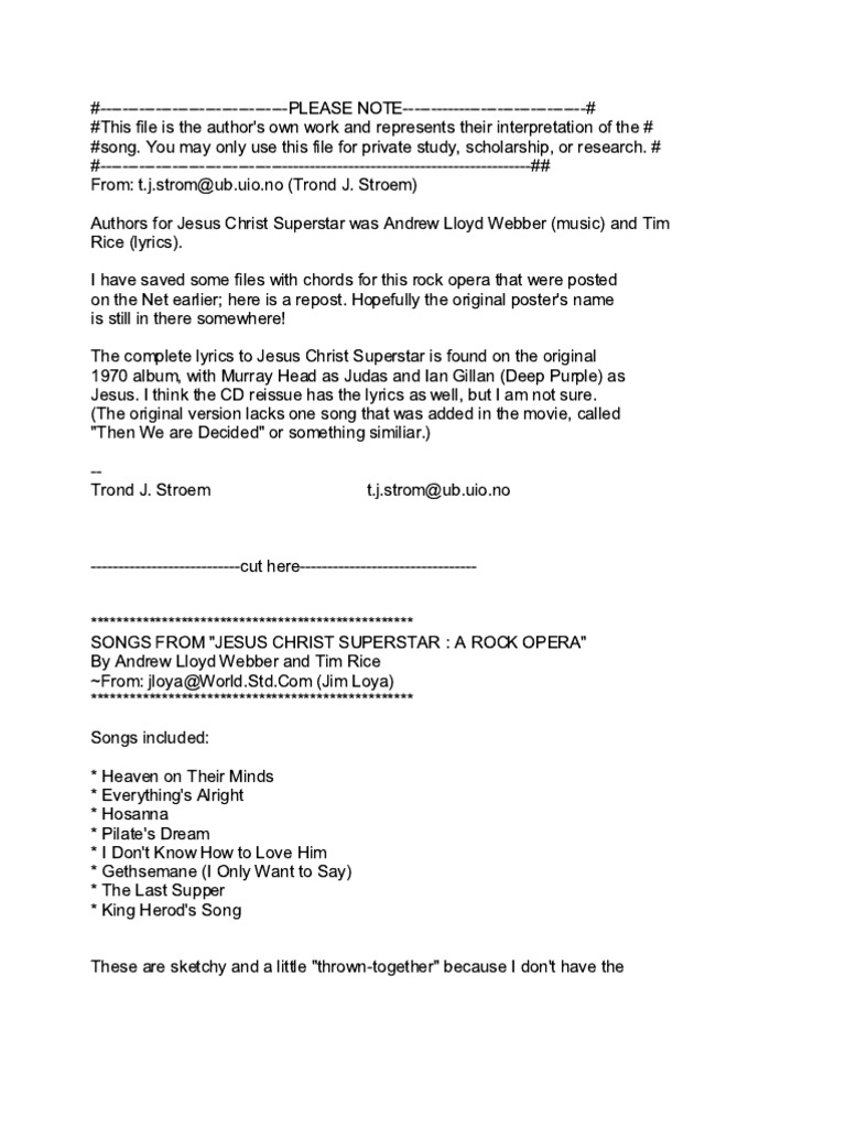 Songs from Jesus Christ Superstar A Rock Opera PDF Leisure