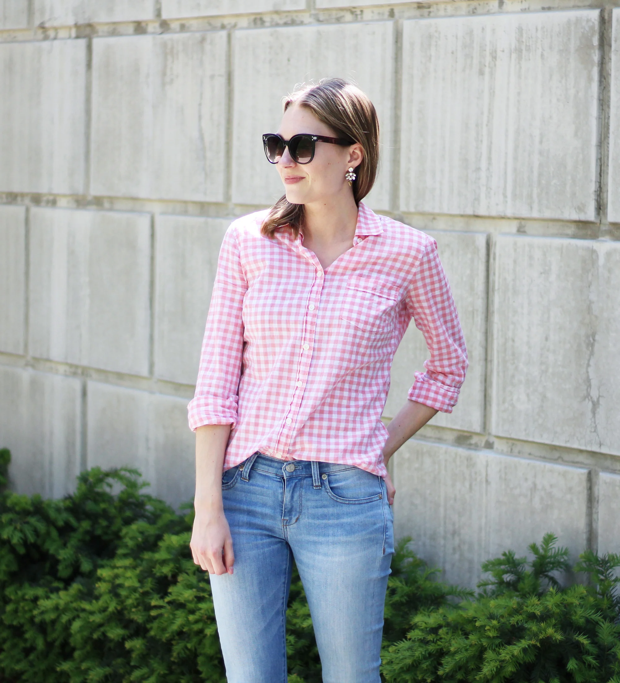 J. Crew Tops J Crew Pink Gingham Shirt Poshmark